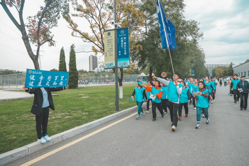 活动开始前,基础课部体育教师李凌带领大家做活动前热身,给教职工们讲解了健步走活动的相关注意事项。活动得到了广大教职工的热烈响应。大家从学校体育场出发,途经大官陶园、枫叶餐厅、博文楼、雷锋广场,最后返回图书馆门前,全程约5公里。大家一边快速行走一边交流沟通,既锻炼了身体又增进了感情。教职工们健步走的队伍形成了学校一道亮丽的风景线。后勤保障部的随队医护人员为活动提供了相关安全保障。能源与水利学院的预备役学生们进行了全程的志愿服务。校工会为参加活动的教职工发放了健步走纪念卡和纪念品。